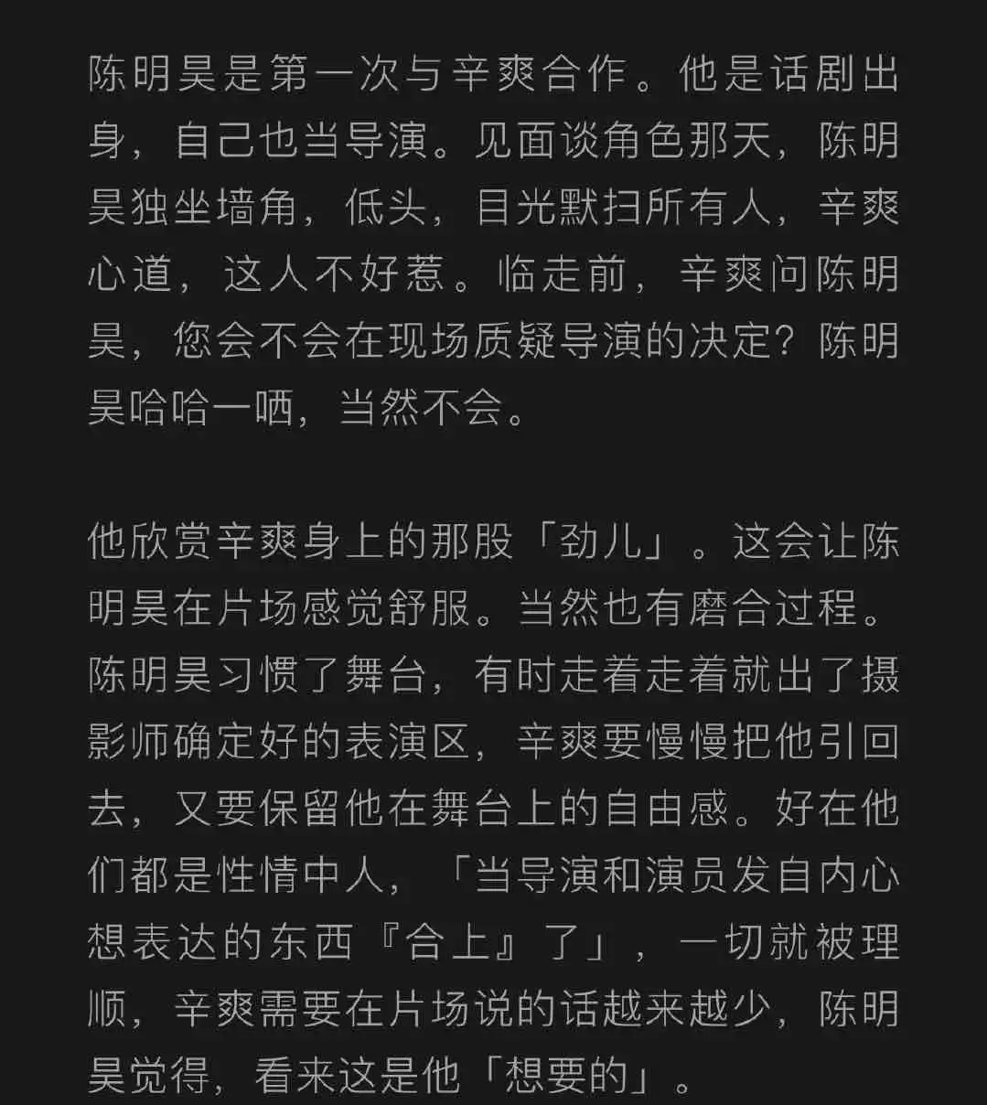 有的人像范伟秦昊陈明昊刘琳,你习惯他们就是演得好,就不意外。有的像蒋奇明,略像生面孔但非常高光,你就记住他们。